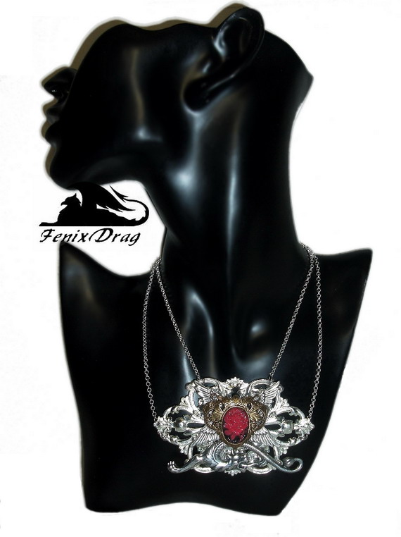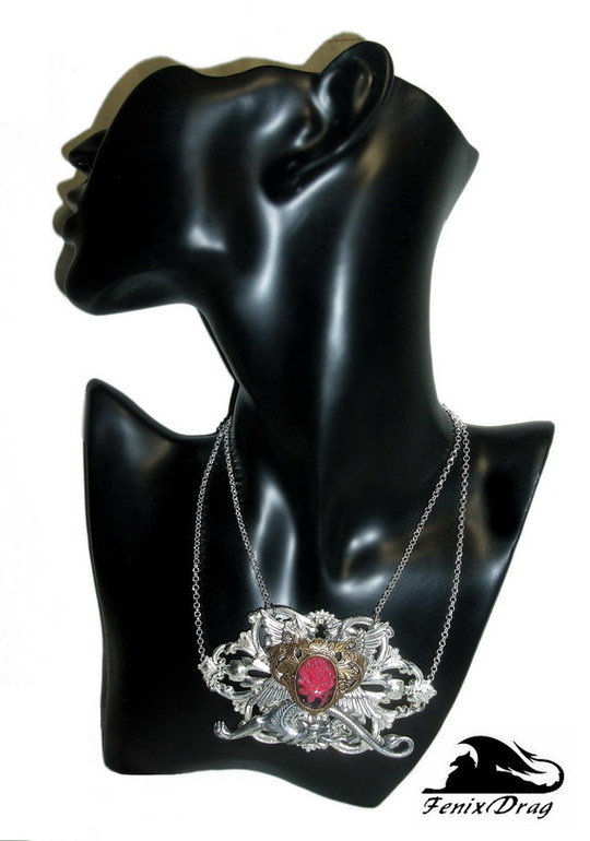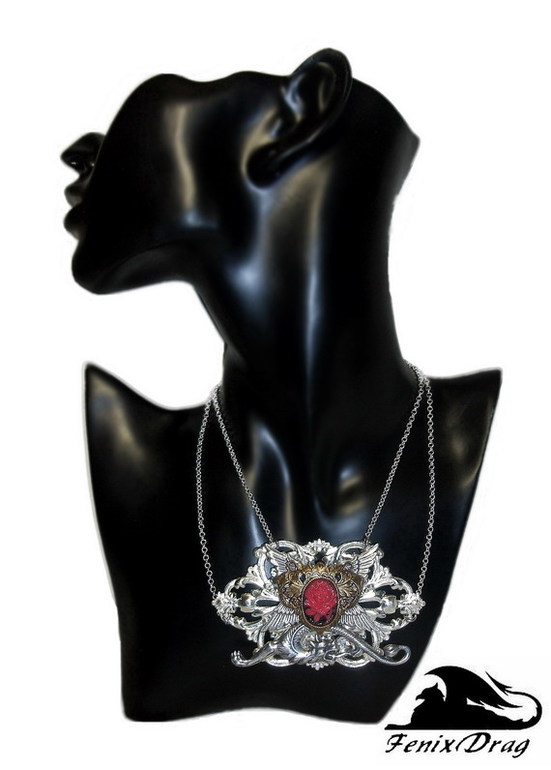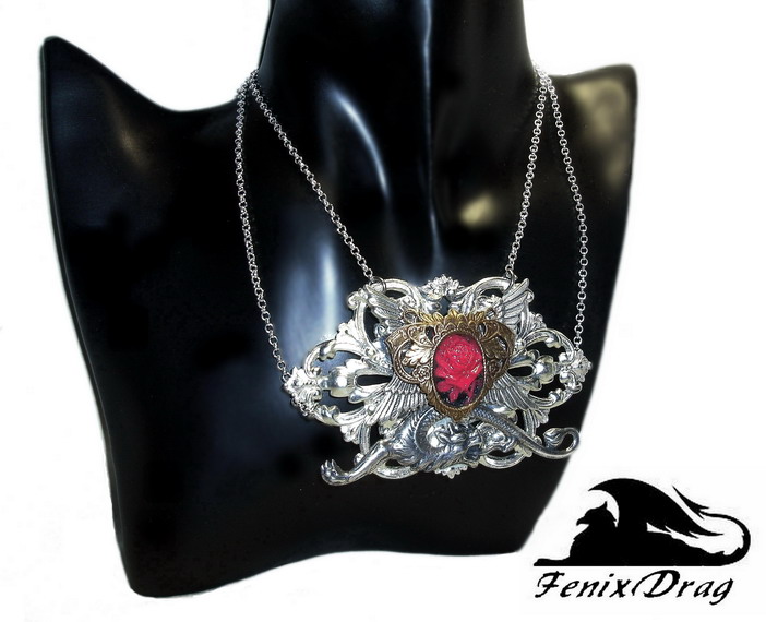 Готический кулон "Оборотень" красная роза и мифический волкСтимпанк, Винтаж, Викторианский стиль