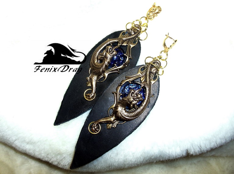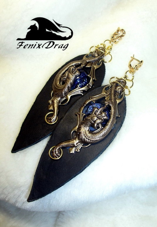 Кожаные длинные серьги "Красный волк. Мистерия" в стиле Нео-винтаж, Фентези, Стимпанк / Steampunk