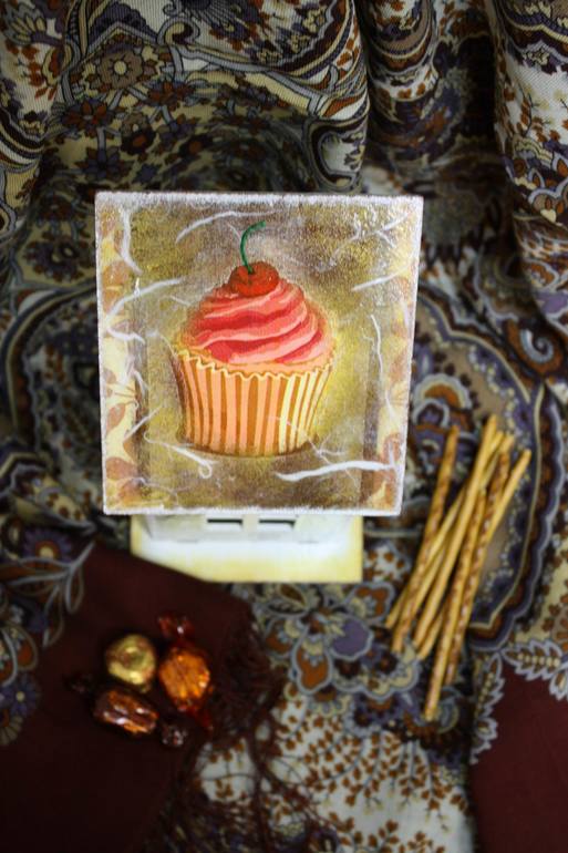Теплого и уютного чаепития!Материалы:рисовая бумага, акриловая краска и грунт,заготовка