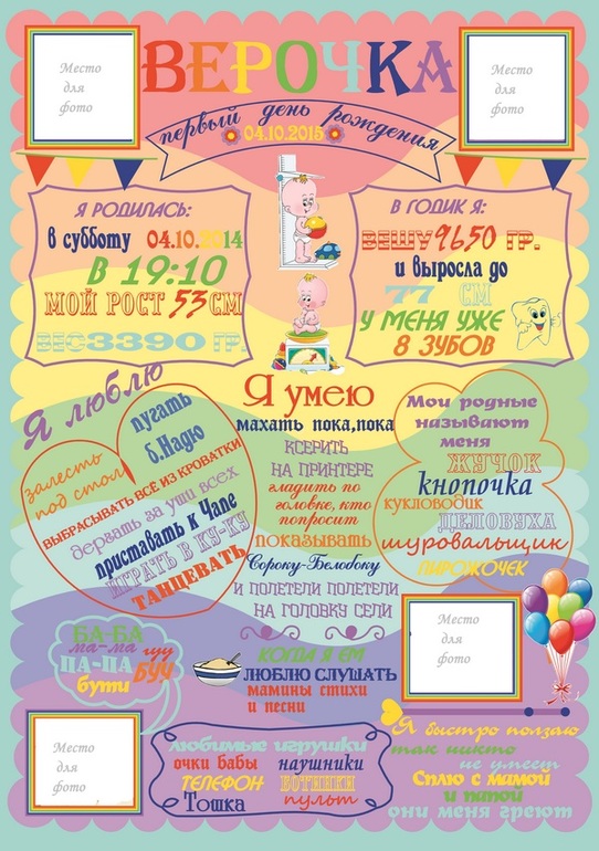 Оформление праздников, аксессуары для фотосессийДевочки сделаю для Вас Плакаты достижений, это вообще уникальная вещь, на плакате отображается все, что мы хотим запомнить, все достижения нашего малыша, все важные события, которые произошли за первый самый главный год жизни! В дальнейшем плакатик прекрасно украсит детскую комнату малыша.