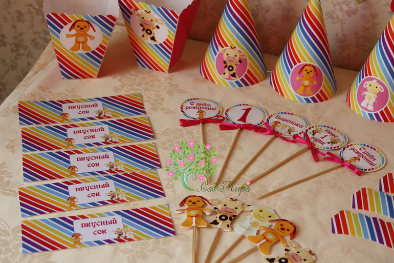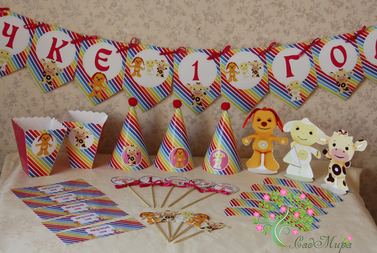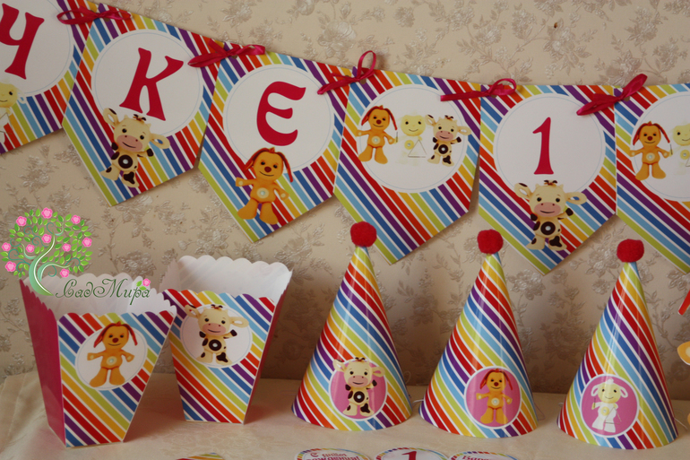 Набор для оформления дня рождения в стиле мультфильма Тини Лав (Tiny Love) радужный.