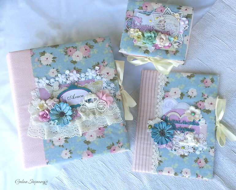 Добрый день! Пришла показать полностью весь набор для малышки Алисы, который включает в себя большой фотоальбом размером 25х29 см (на 8 разворотов), который показывала здесь https://www.babyblog.ru/community/post/newrukodelie/393099 , мамины сокровища на 4 коробочки и папку для свидетельства о рождении форматом А4)..