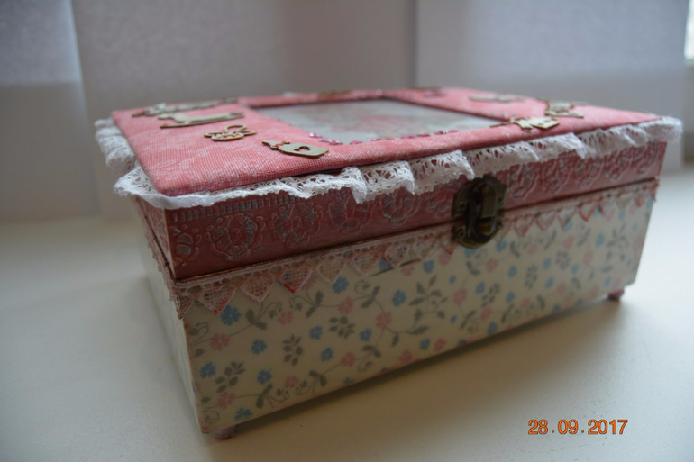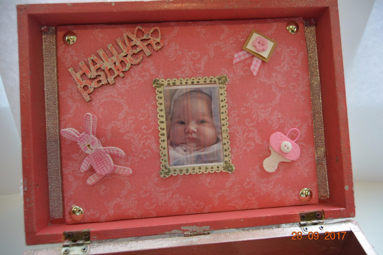 Сама я с большим трепетом отношусь к таким вещам и на каждого ребенка у меня есть своя коробочка, чтобы хранить бирочки из роддома, первую соску, первый загранпаспорт и прочие мелочи, которые интересно будет рассматривать со временем. Сохранить эти воспоминания поможет такая шкатулка, которую изготавливает моя свекровь и наша любимая бабушка Лена. Если Вы хотите порадовать подругу/родственников оригинальным подарком на рождение малыша, то бабушка готова изготовить. Стоимость 2000 руб.