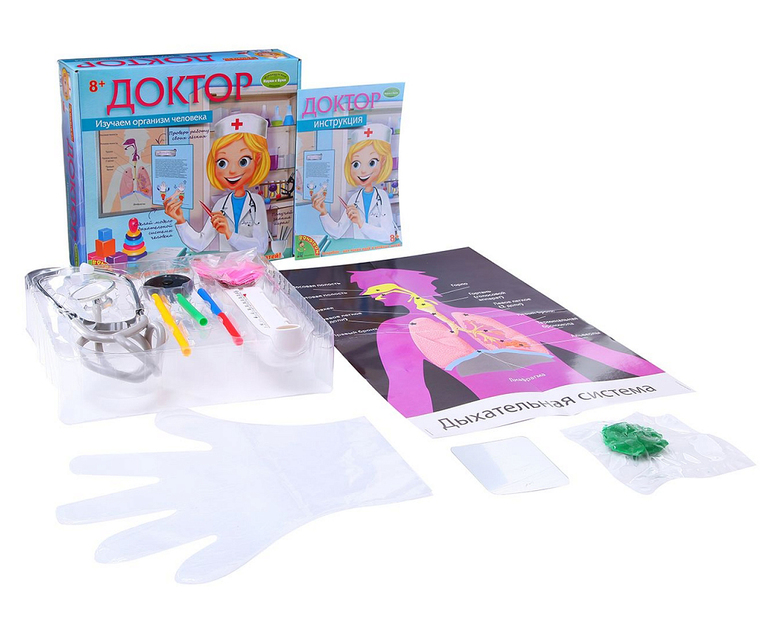Опыты, эксперименты и исследования - это то, что любят все дети! В увлекательной форме, можно изучить дыхательную систему человека и процесс дыхания. Полученные, таким образом знания, усвоятся и будут применены в повседневной жизни ребенка. С набором "Доктор" возможно сделать модель дыхательной системы, определить объем выдыхаемого воздуха и многое другое.