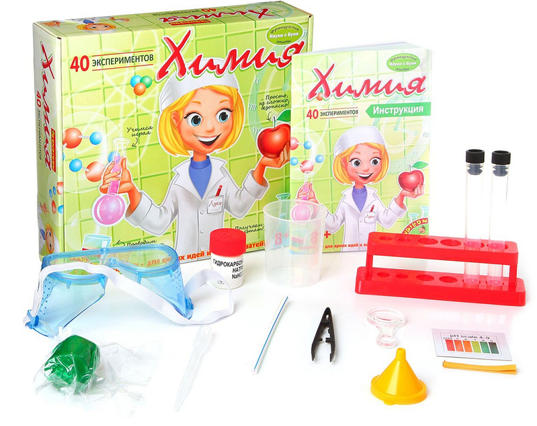 Опыты, эксперименты и исследования - это то, что любят все дети! В увлекательной форме, дети узнают сколько кислорода в воздухе, какова плотность радуги, как сделать торнадо в бутылке и многое другое. С набором "Химия" можно устроить лабораторию прямо у себя дома)).