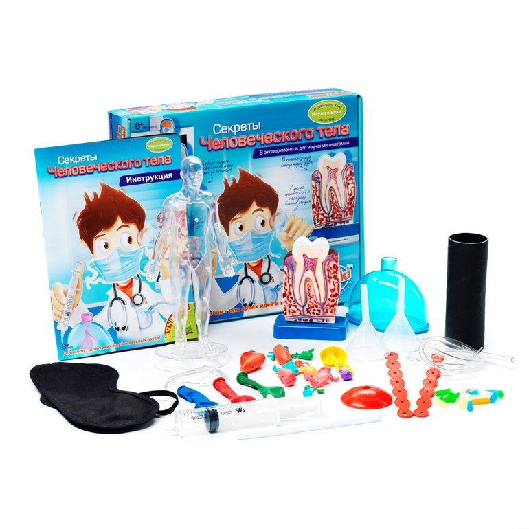 Опыты, эксперименты и исследования - это то, что любят все дети! Легко и просто, в увлекательной форме, можно объяснить, что такое человеческое ДНК, с какой стороны бьется сердце, на сколько можно задерживать дыхание и как устроены наши зубы. Полученные, таким образом знания, усвоятся и будут применимы в повседневной жизни ребенка. А самое главное, что в наборе есть модель тела, с маленькими макетами настоящих органов! Познание человеческого организма будет веселым и интересным.