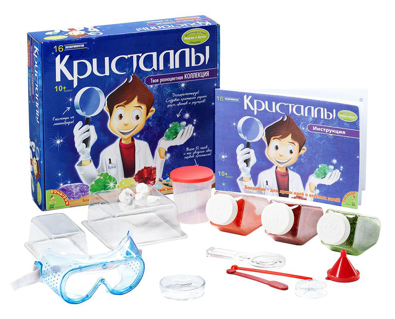 Опыты, эксперименты и исследования - это то, что любят все дети! Легко и просто, в увлекательной форме, можно узнать для чего нужны кристаллы в ювелирной, фармацевтической и пищевой промышленностях. Полученные, таким образом знания, усвоятся и будут применимы в повседневной жизни ребенка. С помощью набора "Кристаллы", дети самостоятельно смогут вырастить кристаллы разных цветов и форм. Это первые шаги в освоении химии, в собственной мини лаборатории!
