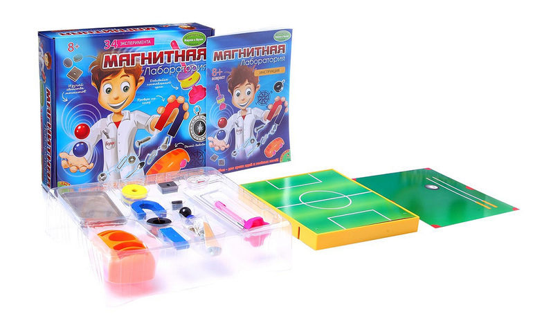 Опыты, эксперименты и исследования - это то, что любят все дети! В увлекательной форме, можно изучить силу и свойства магнитов. Полученные, таким образом знания, усвоятся и будут применены в повседневной жизни ребенка. С набором "Магнитная лаборатория" можно поиграть в магнитобол, бильярд, гольф, рыбалку, создать свой собственный магнит. Представьте себе, 34 уникальных эксперимента!