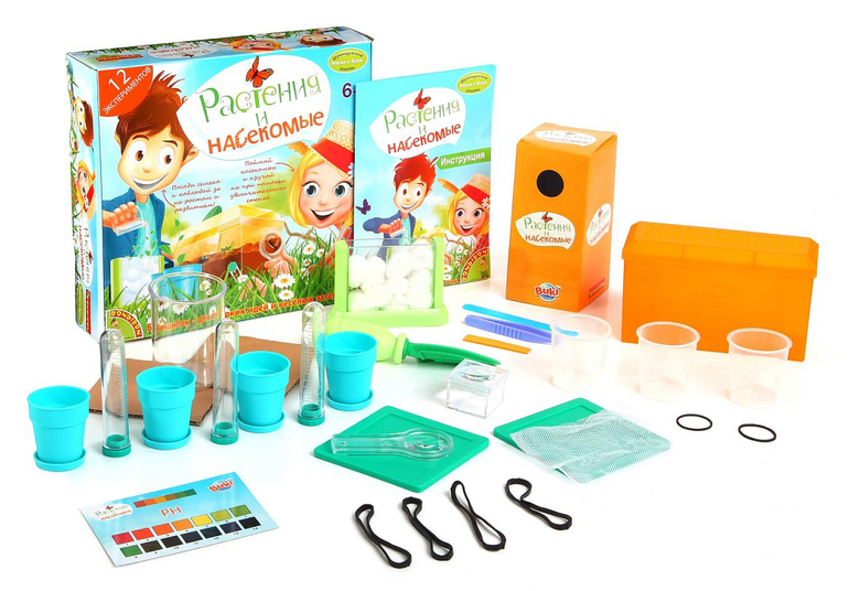 С набором "растения и насекомые" дети смогут понаблюдать за ростом растений и поведением насекомых. Как гусеница превращается в бабочку, как земляные черви роют под землей свои замысловатые ходы или как прорастает пшеничное зерно - наблюдение за всеми этими процессами не только невероятно интересно, но и очень познавательно.