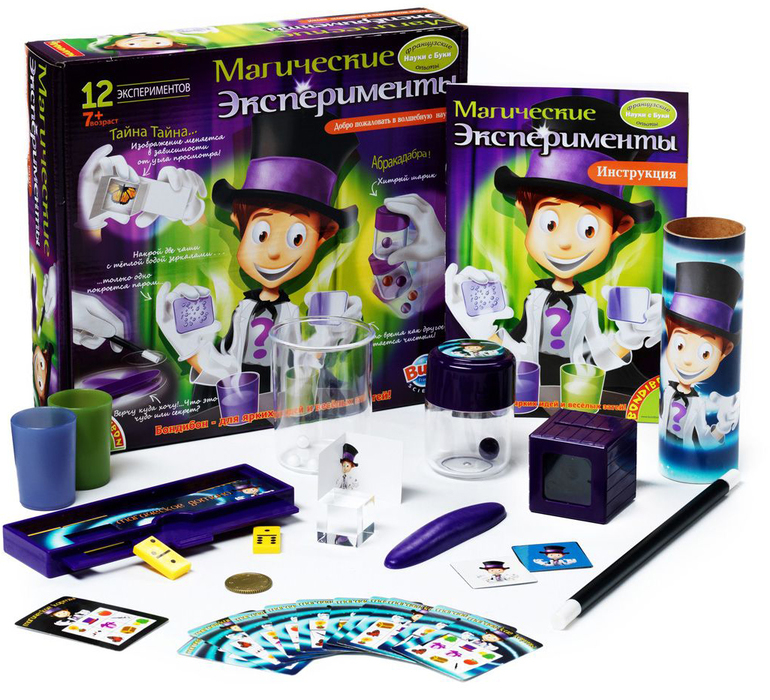Фокусы, фокусы, фокусы - это то, что любят все дети! С помощью набора "Магические эксперименты", дети научатся делать воду липкой, притягивать предметы, фокус с пропавшей монетой и многие другие чудеса!