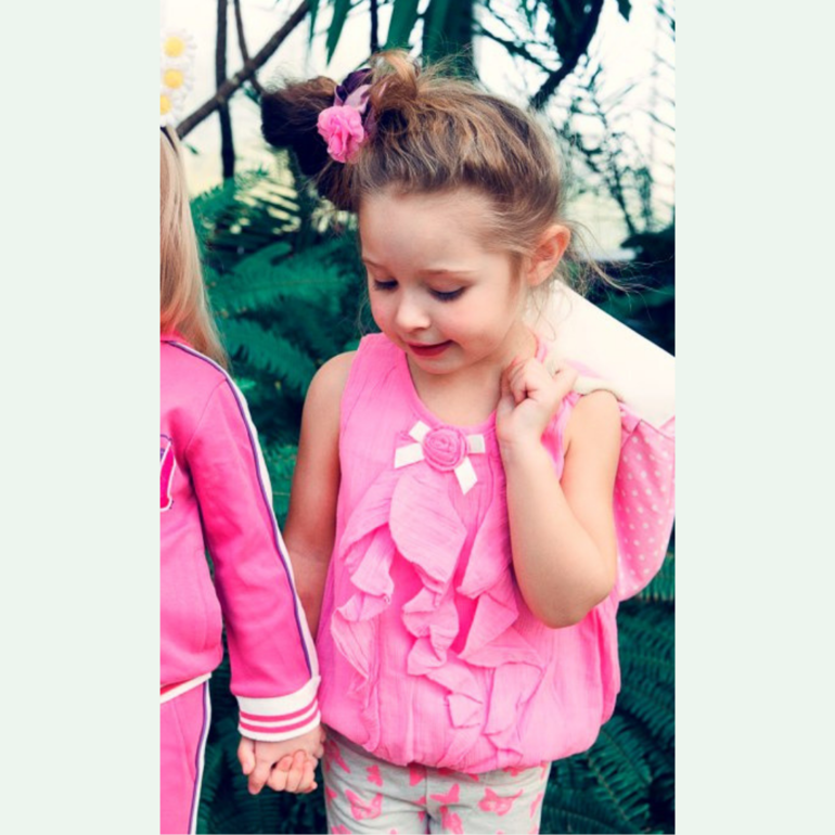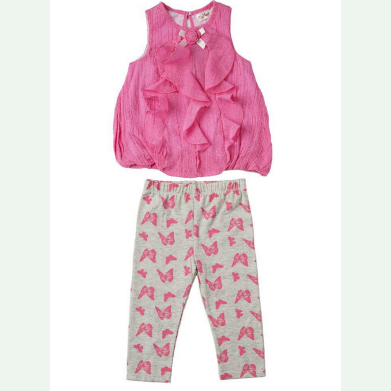 Представьте этот милый, летний комплект на вашей девочке. Разве не чудесно? 🥰 Блузка с воздушными, вертикальными воланами, светлые леггинсы удобной посадки по талии ребёнка, а подчеркивают всю прелесть наряда красивый розовый цвет и принт бабочек.