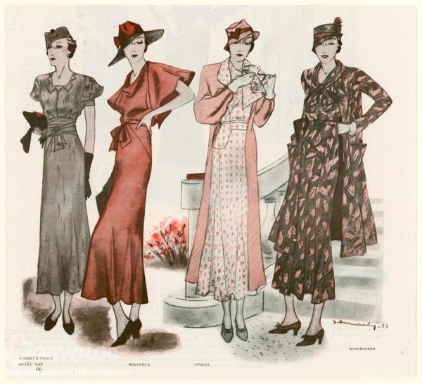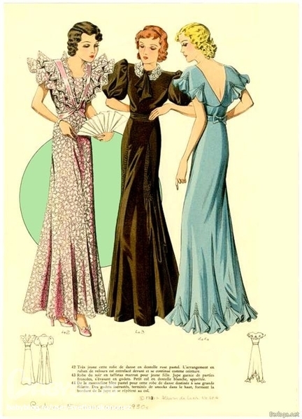 В 30х же волосы постепенно отрастают, приходит мода на блондинок, подол платья опускается почти до щиколотки, а линия талии поднимается на естественный уровень. Подчеркивается линия груди, в моде снова женственность.