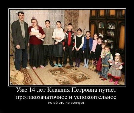 Я наверне одна не поняла юмора в чем связь успокоительных и противозачаточных.Знаю семью где 15 детей!!!Так что 11 не предел.В таких семьях обычно на это идут осознанно.