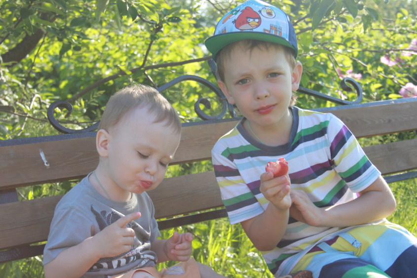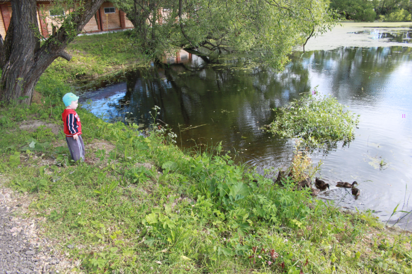 Тимоша вместо хлебушка бросал им камушки) А хлеб, что я давала сам съедал)