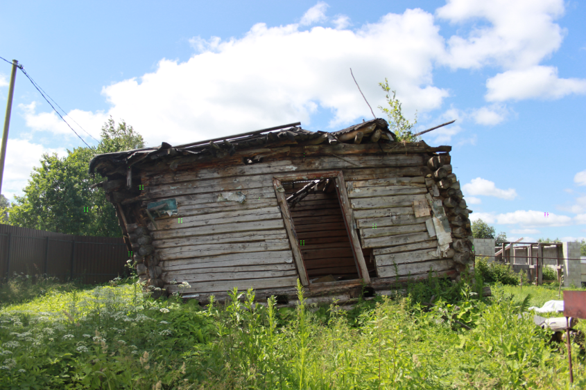 Кусок еще не упавшего старого дома. Так хочу чтоб его поскорей разобрали. Во первых опасно, а во вторых жалко дом...