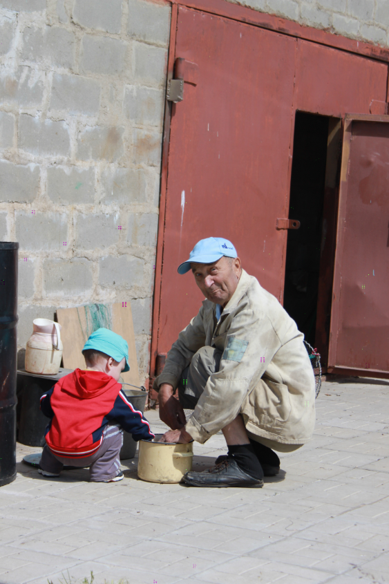 Пока Владик творил, Тимоша с горочки катался, дед дремлет...