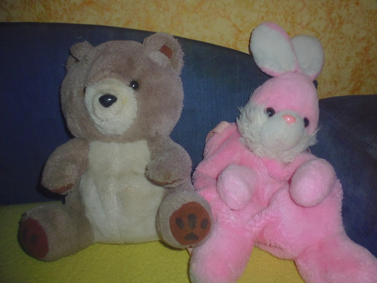 У дочери розовый зайка,она с ним не расставалась .И в садик ходила и спала с ним.
