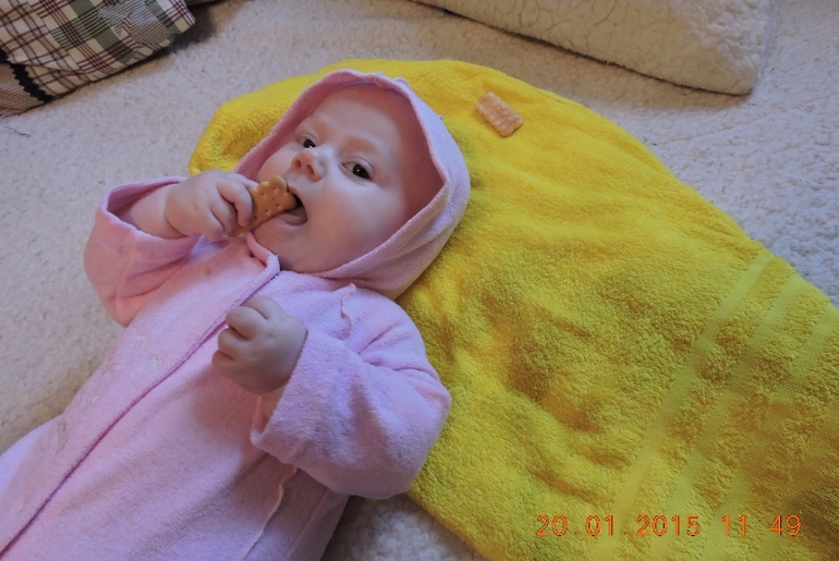 Когда баранки и печеньки в руках — общаются, а так соба старается держаться от нее подальше, боится что влетит ей. Она все пыталась ее вылизывать, папа пару раз "объяснил" что так нельзя.