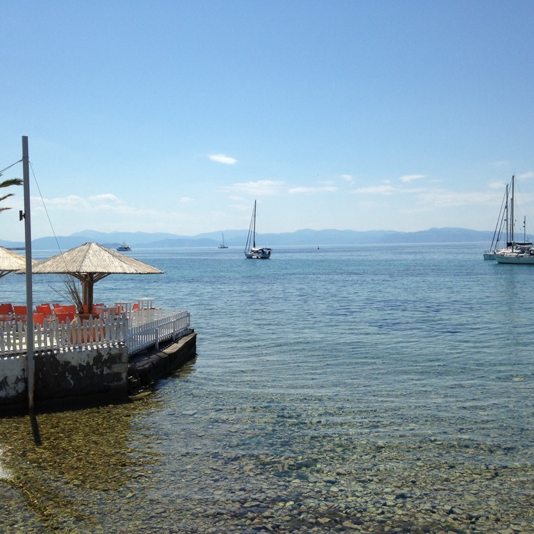 Мы тоже частенько в Грецию. Сами конечно же. Я не уверена что туда наши то делают. Пляж там песок с камешками. Вход в море на нашем пляже песочек, плюс каменные плиты по которым до глубины нужно дойти. Но это не напрягало, они не скользкие ни капли. Море чистейшее. Мы были на окраине этой деревни.