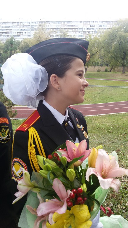 Очень милая девочка! Обаятельная))) И без зазнайства (это я по поводу ее принадлежности к Кадетскому корпусу).Умничка! Удачи ей, успешной учебы, здоровья и всего самого прекрасного в учебном году!