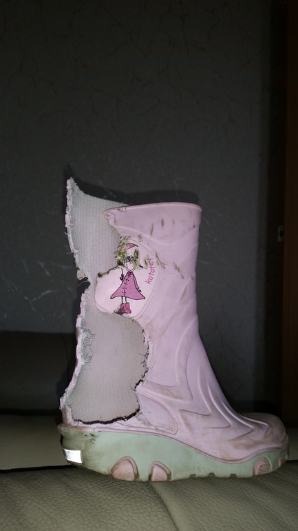 Вчера зажевало резиновый сапог у дочки в экскалатор.