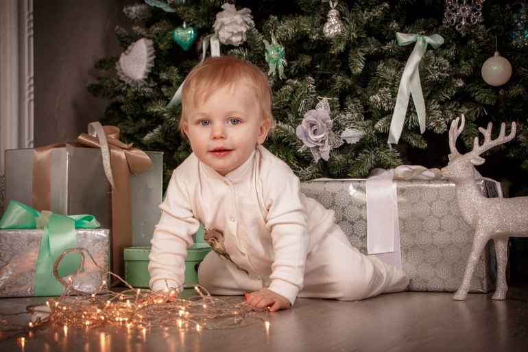 Красивые вы! И живые, непринужденные! Папа улыбается Ваш, расслаблен, а обычно мужья стараются выглядеть такими серьезными. Малыш мишуру жуёт (или что это там такое?))) Такое рождественское настроение на фото!