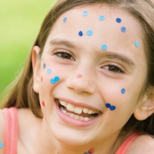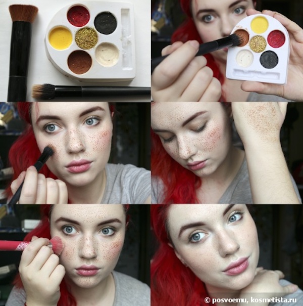 а кто сказал, что веснушки бывают только рыжими. Можно сделать их разноцветными)