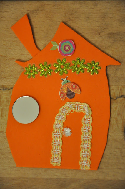 - можно сделать домик из бумаги, окошко из фольги или наклеить осколки от cd-дисков.