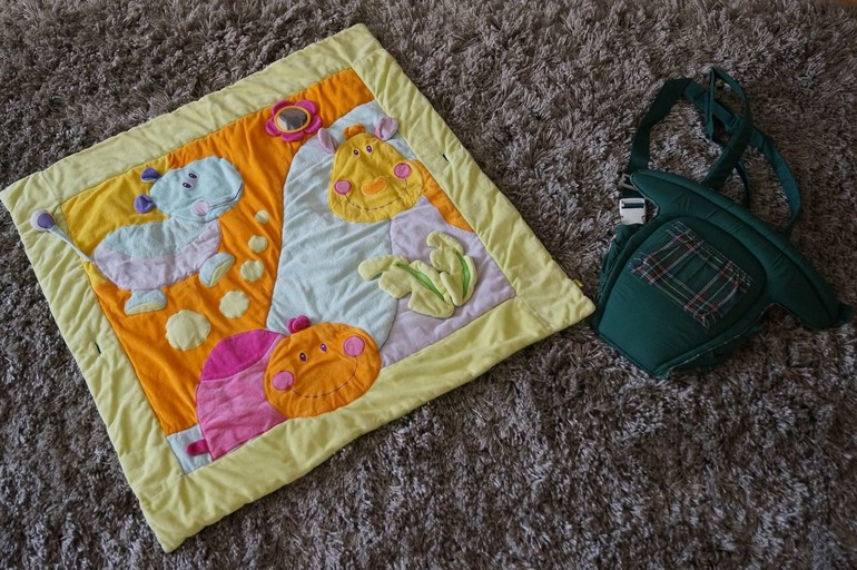 1. Развивающий коврик. Переноска-кенгуру. Все простенькое и активно б/у.