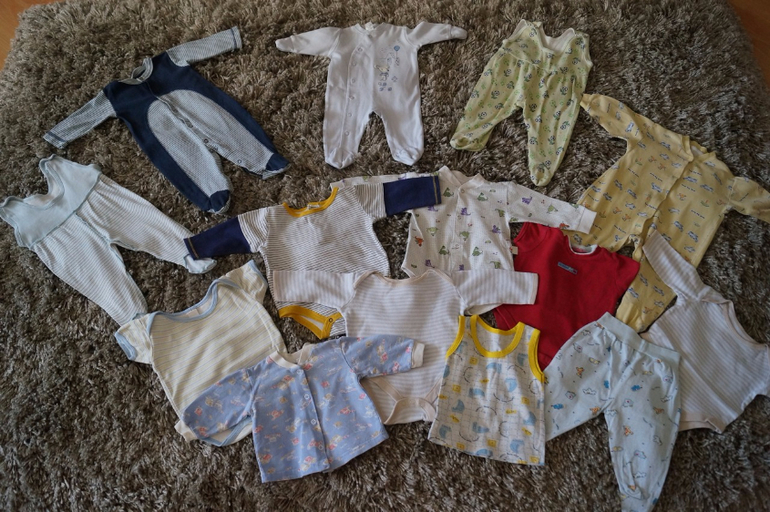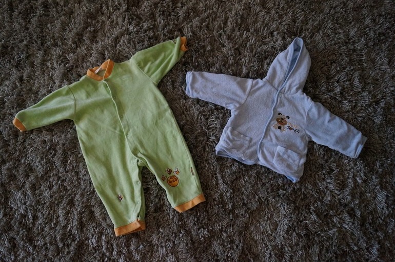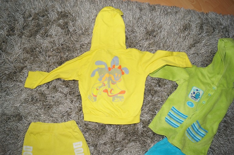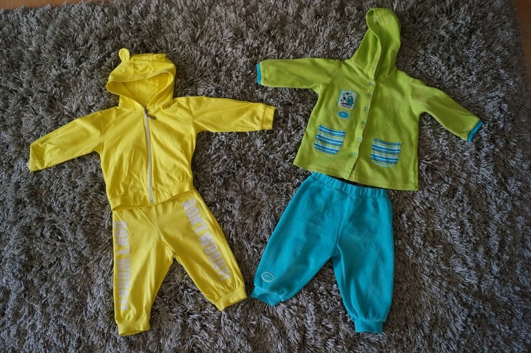 11. Спортивные костюмы примерно на 68 см. Желтый - тонкий хлопок, цветной - велюровый