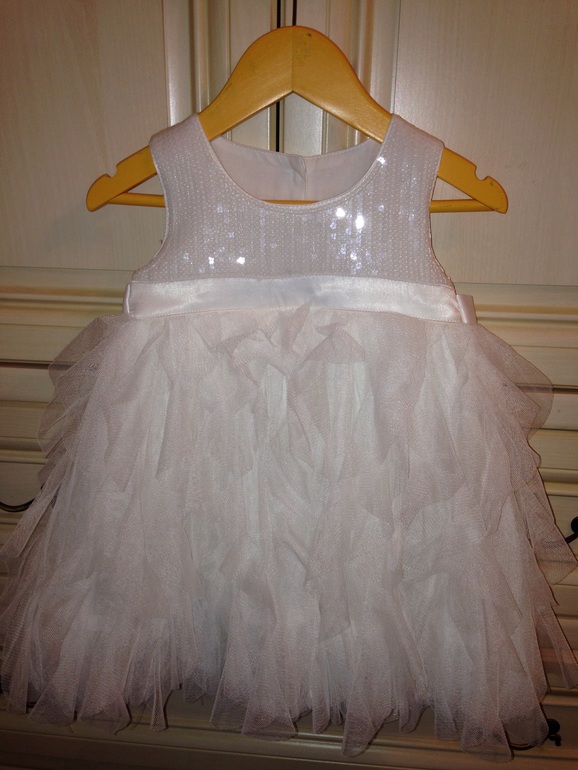 6.Нарядное белое платье. Очень красивое, новое белоснежное платье. Лиф отделан переливающимися пайетками. Р-р 86-92. 1000 рублей.