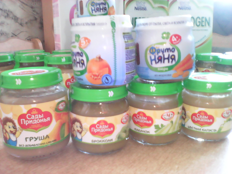Пюре в основном овощные и очень много моркови . Из фруктовых только груша. Желательно забрать все сразу.