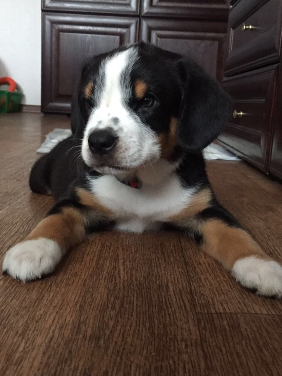 Это Энтлебухер зенненхунд? :) Я тоже такого хотела или берна, но взяли сибу, он поменьше размером, в квартиру удобнее.