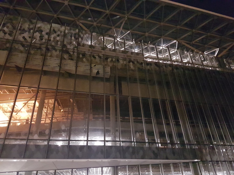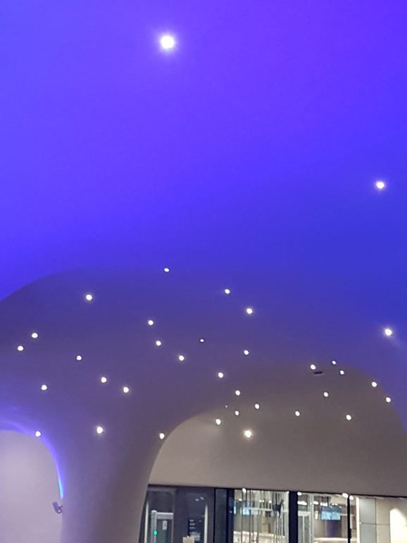 Знаете что это оказалось? Вот только до сих пор мучает вопрос, зачем? Это комнаты рабочих. Заглянув в этот стеклянный круг, мы увидели спальню с двухъярусными кроватями и там переодевались мужчины. Те круги, которые не светились, это окна в потолке комнаты, где погашен свет. У меня по этому поводу одни вопросы, ответов нет.