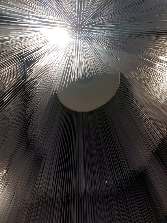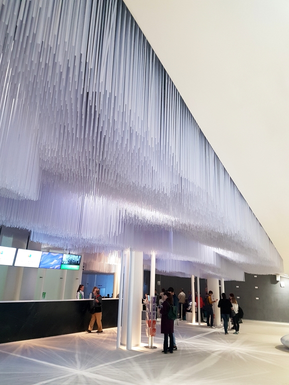 Первым на нашем пути был медиацентр. Мы попытались войти, но там было очень много народа и мы ретировались, сфотографировав только люстры).