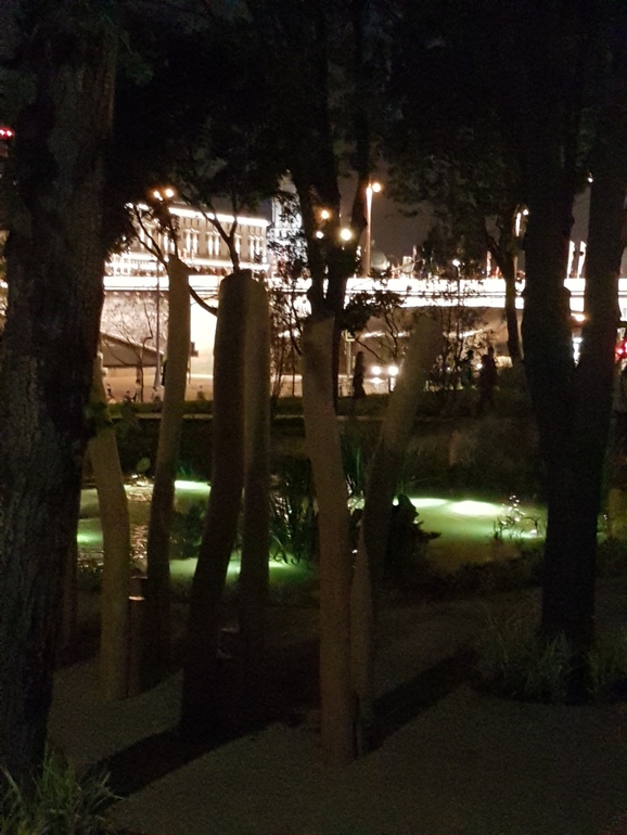 Но пойдем дальше. На территории будет много кафе и ресторанов. В этот вечер они работали для групп.