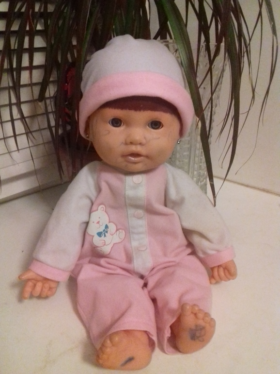 Детки многодетных семейP.S. Девчата, спасибо! Почитала Ваши комментарии и решилась в который раз привести Дианочку в нормальный вид (ну, чем ещё может заниматься многодетная мама в полвторого ночи :) :) :) ). Безуспешно попыталась отмыть следы шариковой ручки ацетоном, доместасом и мазью от акне.... Нашла костюмчик в котором изначально была куплена Дианочка. Зашила у него застёжку, чтобы младшая дочка не смогла снять его, плюс сзади к костюмчику, во избежание потери,пришила и шапочку. Пластелиновую кашу 15 минут вынимала изо рта. Стерла акриловые губы и брови. Губки покрасила бесцветным лаком для ногтей с небольшими блестками. Так что , уверена, что старшая дочь обрадуется увидев утром свою куколку чистенькой. Вобщем-то вид стал довольно терпимым....