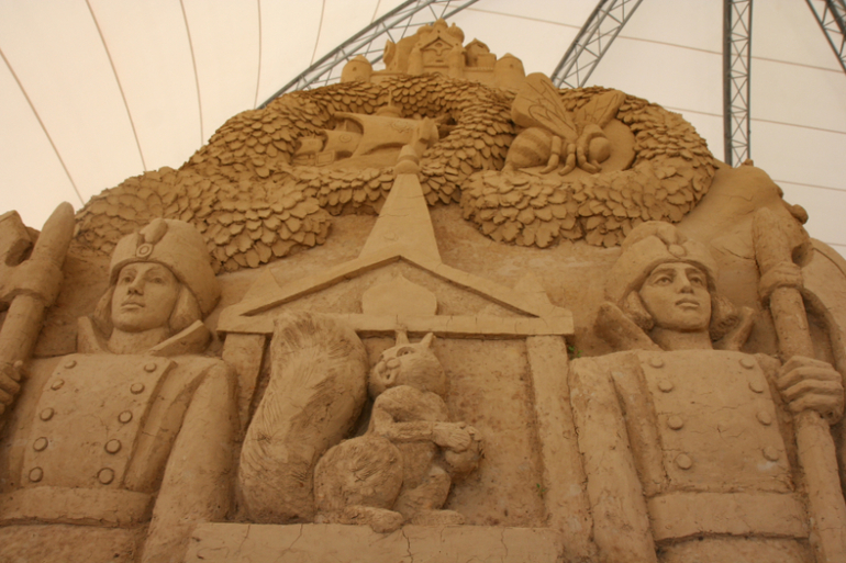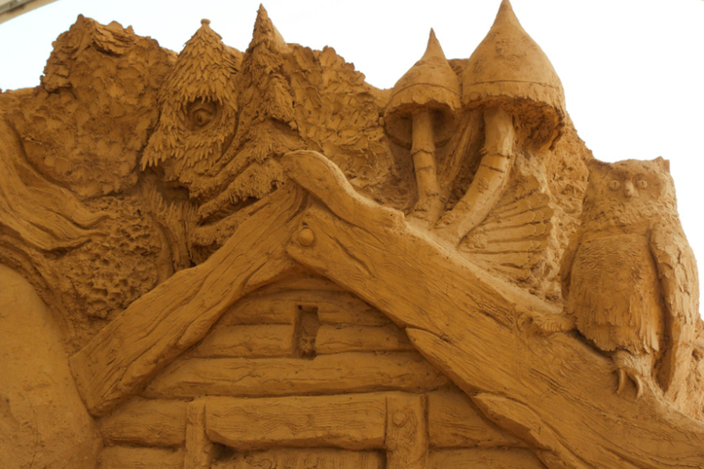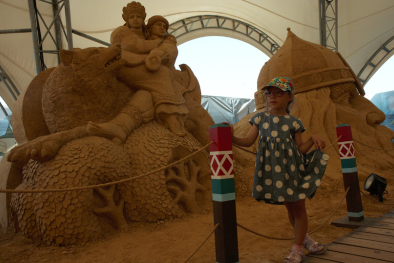 Идем через песчаные сказочные скульптуры.
