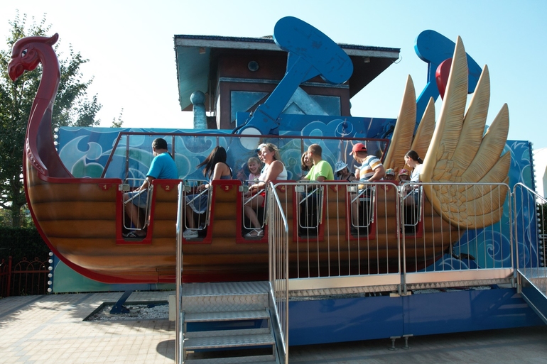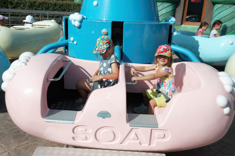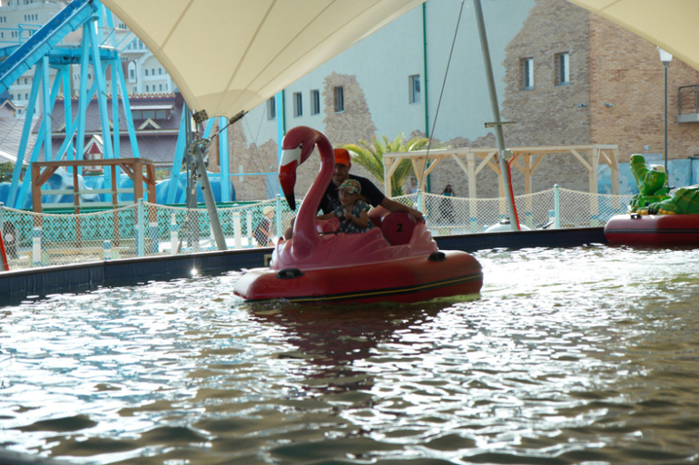 На некоторых аттракционах маленькие дети могут кататься со взрослыми. Например вот на этих вот "фламингах", как говорит Ляна...