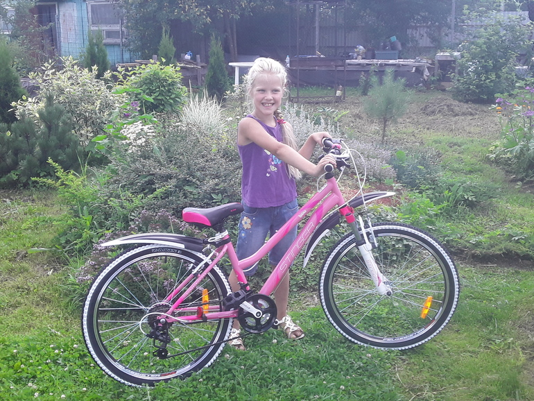 Папа привез Лиле Барби-велик). Теперь катается на большом велосипеде с братьями, нереально счастливая)