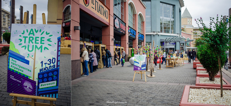 В июле торгово-развлекательный комплекс Атриум, при участии проекта Земляничное дерево представит экопространство aTREEum, в рамках которого пройдет серия мастер-классов и лекций на тему экологии и культуры в городе, в течении всего месяца будет проходить выставка арт-объектов, по выходным гостей ждут перфомансы, концерты и эко-маркет.