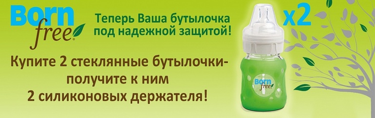 При покупке двух стеклянных бутылочек born free - силиконовые держатели в подарок