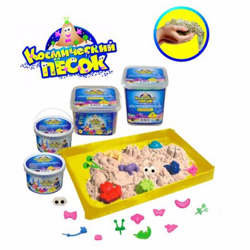 Космический песок - универсальный набор для творчества для детишек от 3-х лет. В составе космического песка смесь кварцевого песка, силикона с антисептиком, что и придает песку такую пластичность и мягкость.