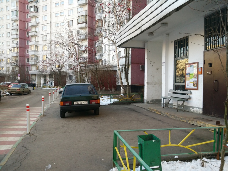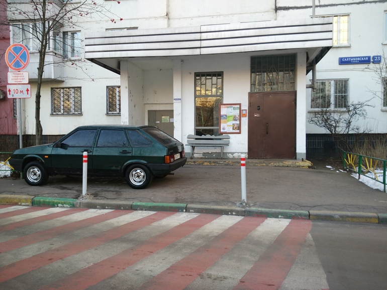 Встает так что остальные не могут выехать с парковочных мест, остается только заежать на тратуар и ехать в доль дома по пешеходной зоне. Оставила ему вежливую записку с просьбой не оставлять машину так если он не планирует выезжать рано. Ну чел видно читать не умеет . По этому с утра уже 3 день его ожидает подарок.