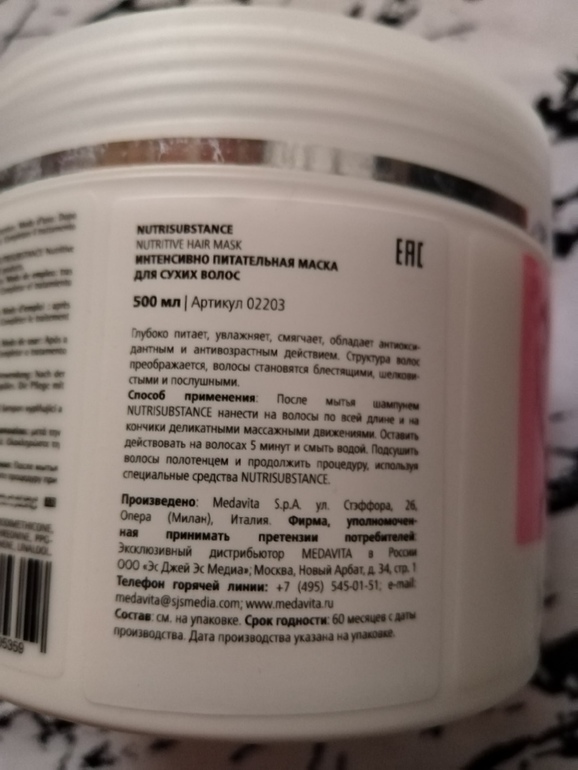 Сегодня напишу и маске для волос, которой пользуюсь уже месяца 3 наверное. Называется она интенсивно питательная маска для сухих волос NUTRISUBSTANCE Nutritive hair mask Medavita.