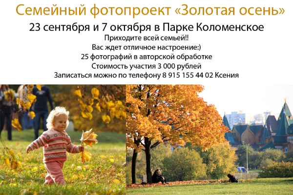 УслугиПриглашаю принять участие в Семейном Фотопроекте «Золотая осень»