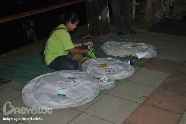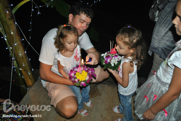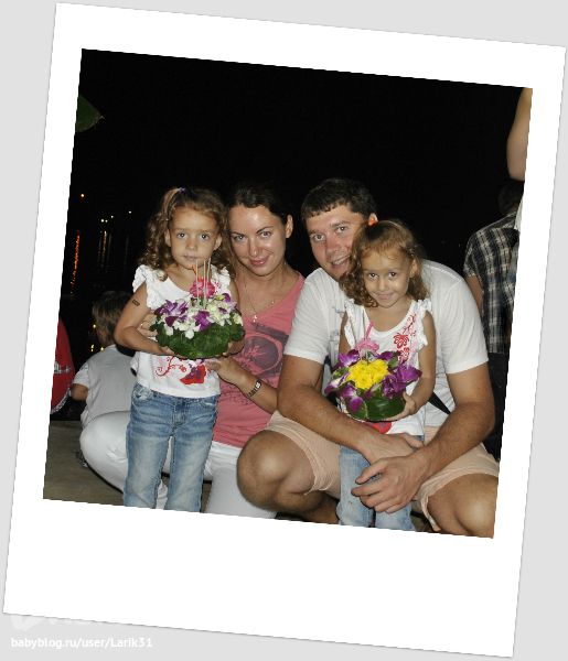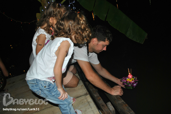 Не забыли прихватить с собой ножницы - положили в каждый Лой Кратонг по прядке волос, срезанной с головы каждого члена нашей семьи. Было заметно, что те кто забыл насильно выдерали волосы со своей головы)))