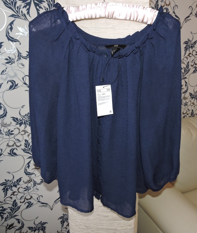2.Блузка новая, фирма H&M,рукава 3/4, покрой "Летучая мышь", ткань шифоновая, легкая летящая, просвечивает, горловина широкая с оборками, размер 40-42-44 (европейский 32-34)