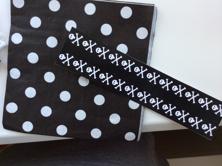 Новые салфетки и неиспользованные маленькие изображения черепа - можно раз резать и применять как подскажет фантазия))