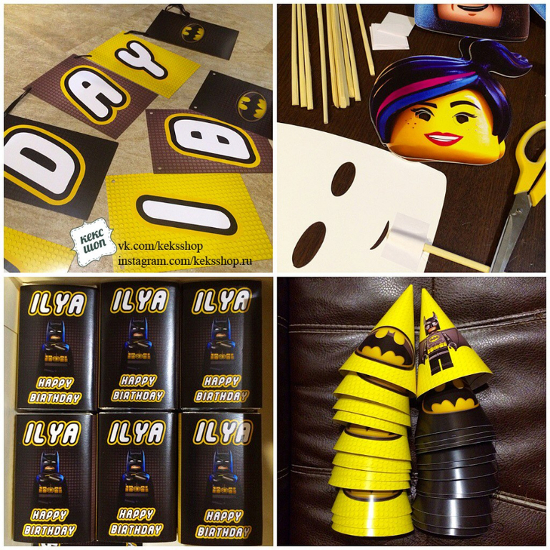 Гирлянда, маски, шоколад и колпачки в стиле Lego Batman: